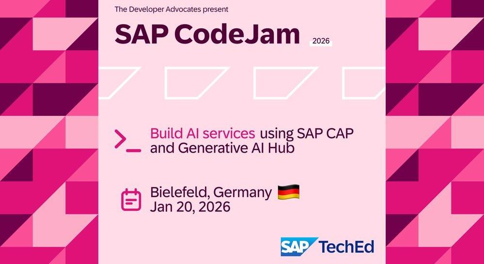 #SAP #CodeJam hosted by consenso in Bielefeld. Build AI Services with CAP & Generative AI Hub Die consenso Consulting aus Bielefeld freut sich, wieder einmal Gastgeber der SAP CodeJam zu sein!Du möchtest praxisnah lernen, wie man Generative AI in eigene Services integriert? Dann sei am Dienstag, den 20.01.2026 live und vor Ort im Steigenberger Hotel…„SAP CodeJam „Build AI Services with CAP & Generative AI Hub“ in Bielefeld (Workshop | Bielefeld)“ weiterlesen