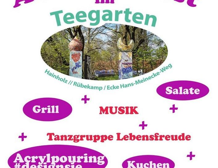 Am Sonntag, den 14. September 2025, findet von 15:00 bis 18:00 Uhr das Sommer-Abschlussfest im Teegarten statt. Der Teegarten am Rübekamp / Ecke Hans-Meinecke-Weg verwandelt sich an diesem Nachmittag in einen Ort der Begegnung, des Genusses und der Kreativität. Besucherinnen und Besucher dürfen sich auf ein abwechslungsreiches Programm freuen: – Grill & Salate für den…„Abschlussfest im Teegarten Hainholz mit Acrylic Pouring am 14. September 2025 (Unterhaltung / Freizeit | Hannover)“ weiterlesen