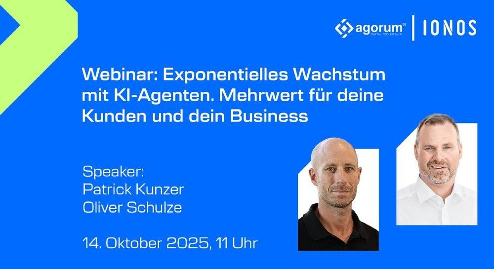 Erlebe, wie du mit KI als Entscheidungsträger sofort Vorteile für dein Unternehmen und deine Kunden realisierst!In diesem Webinar von agorum®, dem Anbieter von ALBERT | AI, und der IONOS Cloud, dem führenden Experten für zuverlässige IT-Infrastrukturen, erhältst du praxiserprobte Einblicke, mit denen du den KI-Erfolg in deinem Unternehmen sofort anstoßen kannst. Was dich erwartet: Echter…„Exponentielles Wachstum mit KI-Agenten – Mehrwert für deine Kunden und dein Business (Webinar | Online)“ weiterlesen