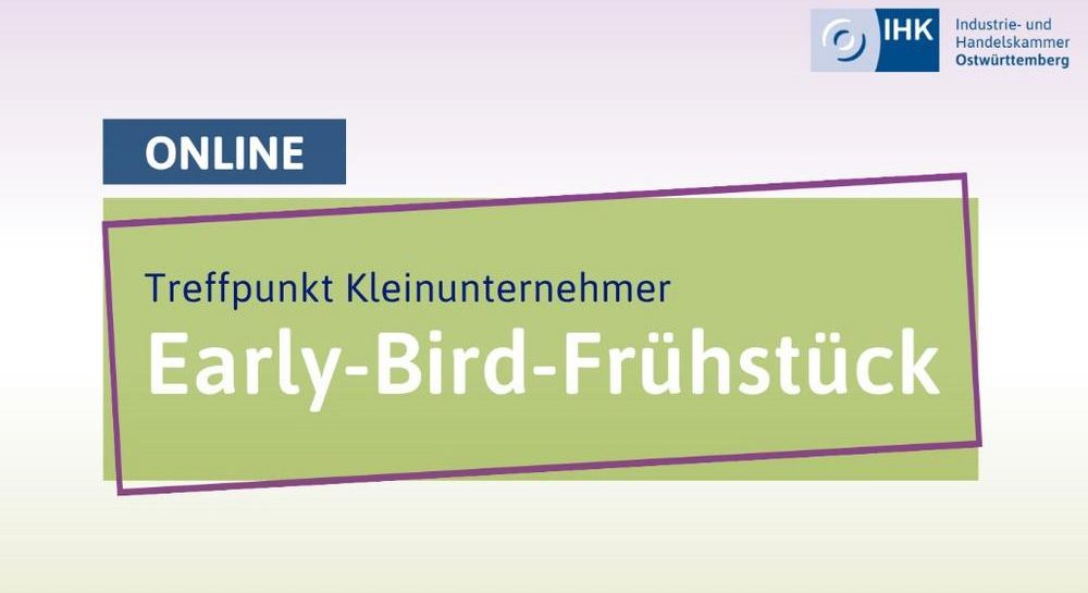 Donnerstag, 16. Oktober 2025, von 8:30 Uhr bis ca. 10:30 Uhr das kostenfreie „Early-Bird-Frühstück“ der IHK Ostwürttemberg online statt.