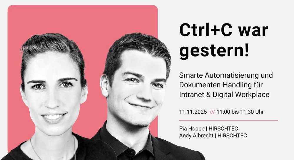 Manuelle Prozesse, doppelte Datenpflege und Copy-Paste gehören der Vergangenheit an! In diesem Webinar zeigen wir, wie Sie durch smarte Automatisierungen und clevere Tools das Dokumenten-Handling im Intranet und Digital Workplace mit M365 deutlich vereinfachen. Wir geben praxisnahe Einblicke in Lösungen rund um verbessertes Suchen und Finden, Metadaten-Management, dynamische Inhaltsverknüpfungen und wiederverwendbare Templates – ideal für…„Ctrl+C war gestern! Smarte Automatisierung und Dokumenten-Handling für Intranet & Digital Workplace (Webinar | Online)“ weiterlesen