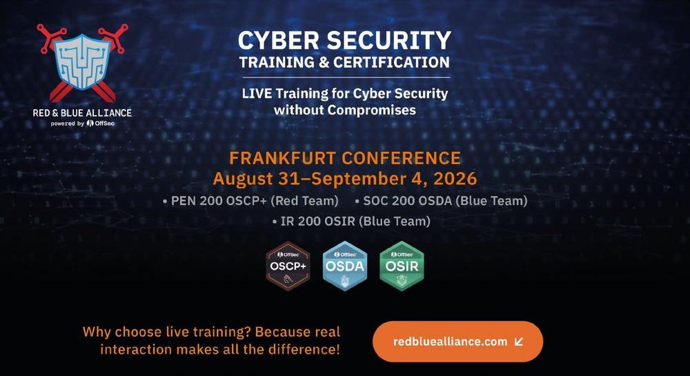 Die Red & Blue Alliance steht für erstklassige Live Cyber Security Trainings, anspruchsvolle Zertifizierungen und praxisnahe Lerninhalte. Teilnehmende profitieren von intensiven Live-Simulationen, realistischen Szenarien und direktem Austausch mit erfahrenen Fachleuten. So entsteht ein Lernumfeld, das deutlich über klassische Online-Schulungen hinausgeht und nachhaltige Kompetenzen für den realen Einsatz vermittelt. Gemeinsam mit OffSec unterstützen wir Fachkräfte und…„Red & Blue Alliance Conference Frankfurt (Konferenz | Frankfurt am Main)“ weiterlesen
