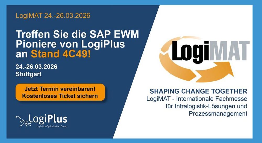Die SAP EWM Pioniere auf der LogiMAT 2026 Ob Migration, Automatisierung oder Operational Excellence: Wir rocken Ihre Intralogistik! Europas größte Intralogistikmesse LogiMAT öffnet vom 24. bis 26. März auf dem Messegelände in Stuttgart ihre Pforten. Auch wir als SAP EWM Pioniere werden wieder für Sie mit einem Ausstellungsstand. Wir freuen uns auf den persönlichen Austausch mit Ihnen. Sie finden…„Die SAP EWM Pioniere auf der LogiMAT 2026 (Messe | Leinfelden-Echterdingen)“ weiterlesen