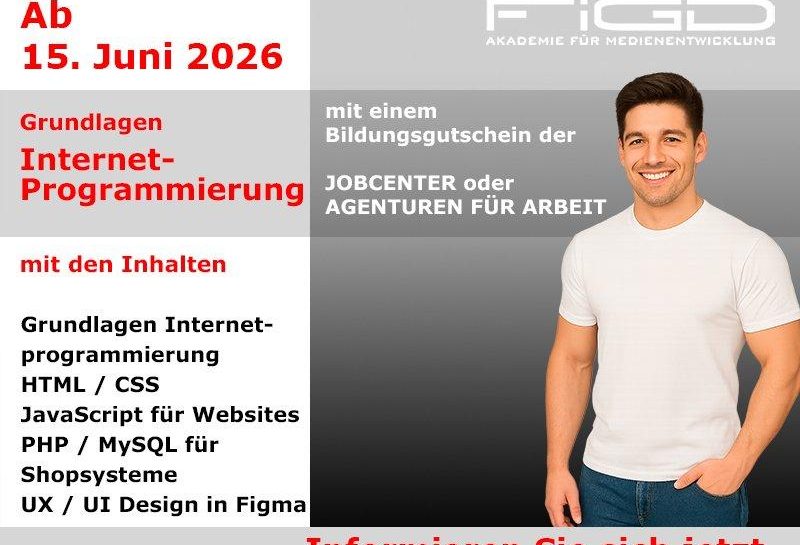 Grundlagen Internetprogrammierung professionell in Präsenz lernen Wer sich beruflich neu orientieren und einen fundierten Einstieg in die Welt der Webentwicklung und digitalen Anwendungen schaffen möchte, findet mit der Weiterbildung Grundlagen Internetprogrammierung an der FiGD Akademie eine praxisnahe und arbeitsmarktorientierte Qualifizierung. Die Weiterbildung wird in Präsenz durchgeführt und richtet sich an Menschen, die sich im Bereich…„Mit HTML, CSS, JavaScript und PHP beruflich neu starten (Schulung | Berlin)“ weiterlesen