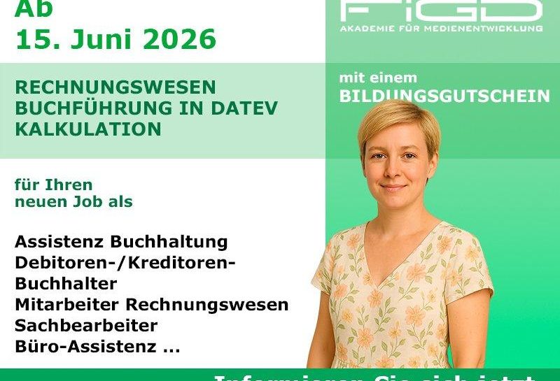Rechnungswesen und Buchführung online lernen und neu durchstarten Wer sich beruflich neu orientieren und im kaufmännischen Bereich eine stabile und gefragte Qualifikation erwerben möchte, findet mit der Weiterbildung im Rechnungswesen, in der Buchführung und Kalkulation an der FiGD Akademie einen praxisnahen Einstieg in ein vielseitiges Tätigkeitsfeld mit langfristiger Perspektive. Die Weiterbildung wird als Onlinekurs durchgeführt…„Mit DATEV und Kalkulation online in den kaufmännischen Beruf (Schulung | Online)“ weiterlesen