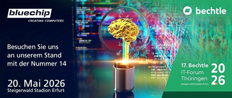 Besuchen Sie uns am 20. Mai 2026 am Stand 14 im Steigerwald Stadion Erfurt! Wir sind als Aussteller beim 17. Bechtle IT-Forum Thüringen dabei und präsentieren innovative IT-Lösungen für Unternehmen und öffentliche Verwaltungen. Freuen Sie sich auf spannende Einblicke in die neuesten Trends der Digitalisierung, IT-Infrastruktur und KI-Anwendungen.