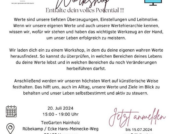 Werte sind unsere tiefsten Überzeugungen, Einstellungen und Leitmotive. Wenn wir unsere eigenen Werte und auch unsere Werte-Hierarchie kennen, wissen wir, wofür wir stehen und haben das wichtigste Werkzeug an der Hand, um unser Leben erfolgreich zu meistern. Wir laden dich herzlich ein zu einem Workshop, in dem du deine eigenen, wahren Werte herausfindest. So kannst…„Werte-Workshop (Workshop | Hannover)“ weiterlesen