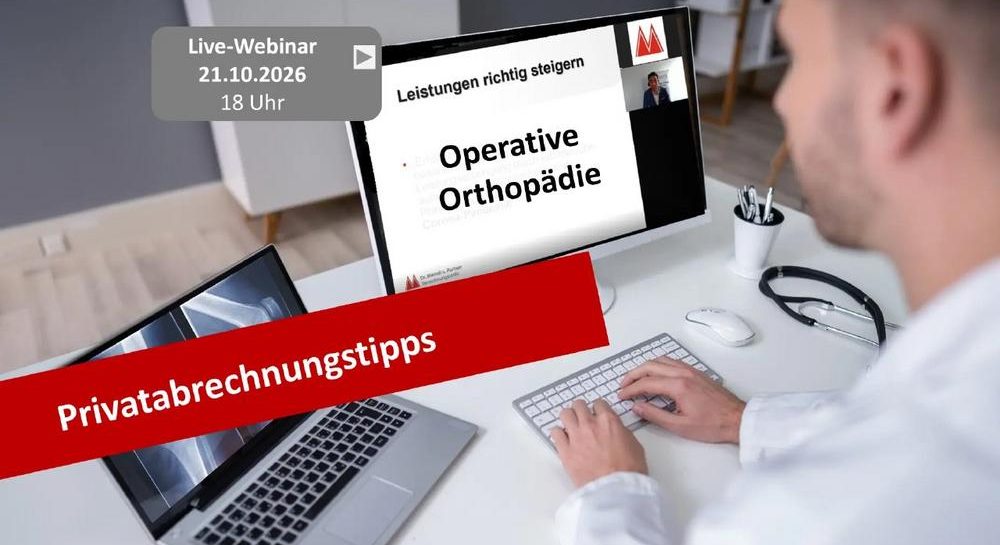 Live-Webinar für die Fachbereiche Orthopädie, Unfallchirurgie und Neurochirurgie am 21.10.2026 Ihr Nutzen Sie erhalten Tipps für eine optimale Abrechnung operativer Leistungen unter Beachtung des im §4 Abs. 2a der GOÄ beschriebenen Zielleistungsprinzips sowie auf Basis einer vollständigen OP-Dokumentation. Profitieren auch Sie von unserer über 50-jährigen Erfahrung im Bereich der Privatabrechnung, basierend auf unserer Betreuung und…„Privatabrechnungstipps Operative Orthopädie (Webinar | Online)“ weiterlesen