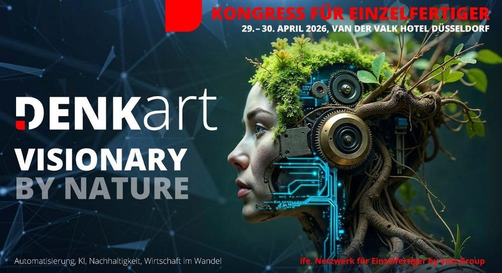 Kongress für Einzelfertiger 2026 DENKart – Visionary by Nature Zukunft beginnt im Dialog. Das Programm von „Visionary by Nature“ verbindet Inspiration mit Praxis: In Keynotes von Vordenkern, Impuls-Vorträgen aus der Industrie und Deep-Dives mit Fachkolleg:innen tauchen wir tief ein in die Potenziale von Automatisierung, KI und nachhaltiger Produktion. Freuen Sie sich auf: – Visionäre Keynotes zu technologischen und gesellschaftlichen Entwicklungen – Impulse direkt…„Kongress für Einzelfertiger 2026 (Kongress | Düsseldorf)“ weiterlesen