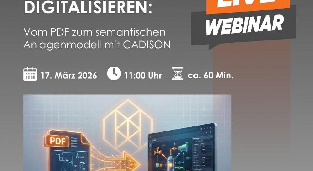 Viele Bestandsanlagen stehen heute vor derselben Herausforderung: Die R&I-Fließbilder liegen lediglich als PDF vor – statisch, schwer auswertbar und ohne direkte Verknüpfung zu Engineering-Daten. Für Umbauten, Dokumentationspflichten oder Optimierungen müssen Informationen oft manuell rekonstruiert werden. Gleichzeitig steigt der Druck, Brownfield-Anlagen fit für Digitalisierung, Digital Twin und KI-Anwendungen zu machen. Mit CADISON R25 gibt es nun…„Bestands-P&IDs digitalisieren: Vom PDF zum semantischen Anlagenmodell mit CADISON (Webinar | Online)“ weiterlesen